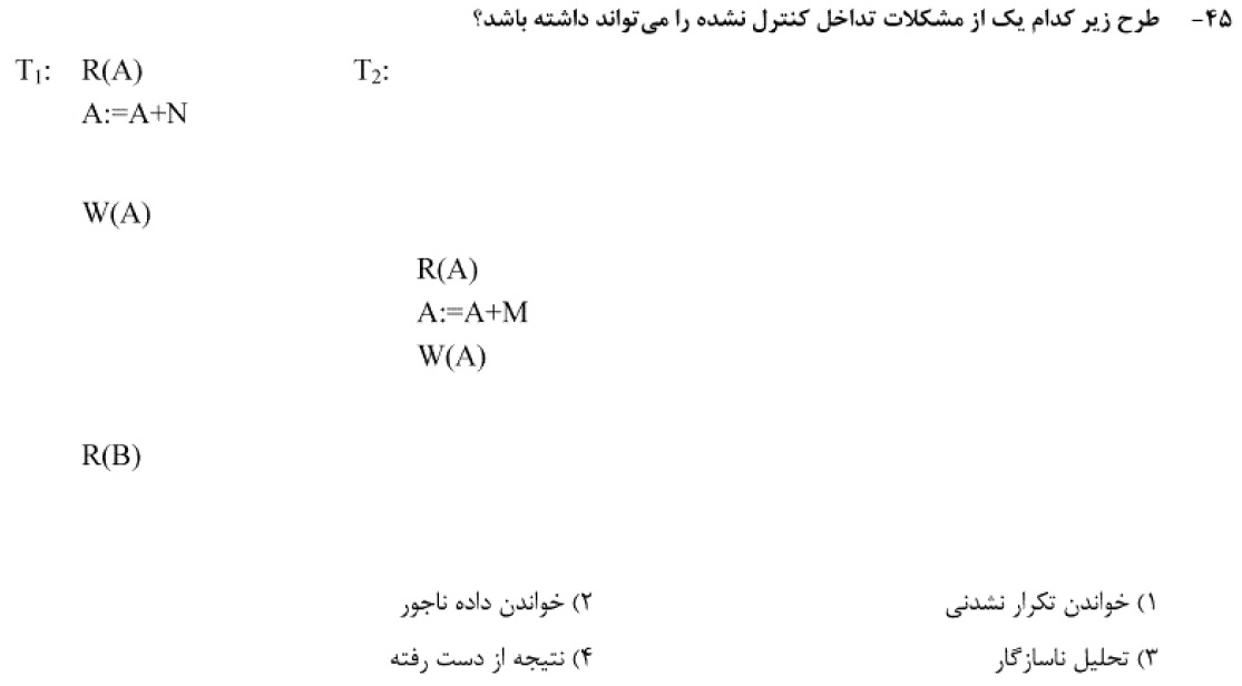 جواب درست سوال باید خواندن کثیف باشد. خب به نظرم این گزینهی ۱ است چون وقتی دوباره بخونیم یک مقدار دیگه میخونیم پس تکرار نمیشه. آخه گزینه ۲ که داره میگه خواندن ناسازگار که یک گزینهی دیگه است و آخری هم میگه به روز رسانی گمشده.